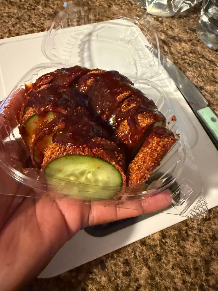 Our Candy Cucumber is a bold and flavorful treat! A crunchy pickle wrapped in candy, then topped with tangy chamoy, zesty tajín, and chewy peach rings. Sweet, spicy, and irresistible in every bite!